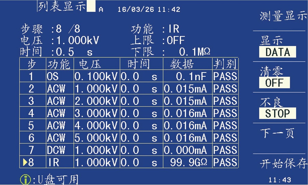 ●列表掃描功能,實現不同步驟、 不同條件測量結果一屏顯示