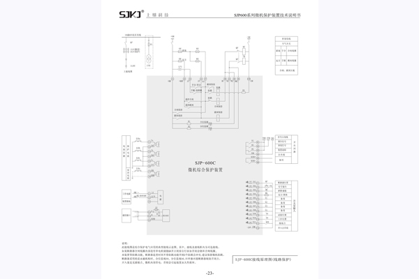 三、SJP-600C微機綜合保護(hù)裝置接線原理圖