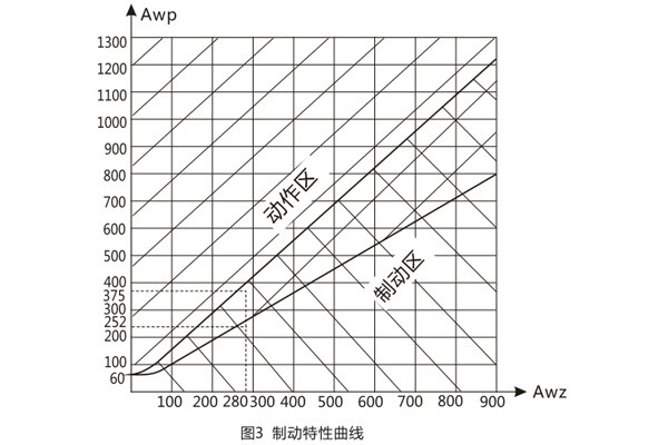 4.由動作電流與制動電流的比值所決定的制動系數Kz可以在廣泛的范圍內變化,圖3的制動特性AWp=f(AWz)是其極限范圍,它與工作電流濟口制動電流間的相位角有關,但無論在任何角下都不應越出曲線的范圍,,5.可靠系數(當一次動作電流等于5IDz的繼電器正弦動作電流與當一次動作電流等于5IDZ的正弦動作電流的比值)不小于1.35。