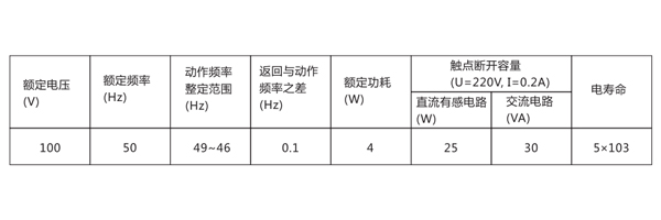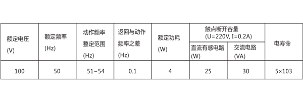 BDZ-1B低頻率繼電器主要技術數據見表。