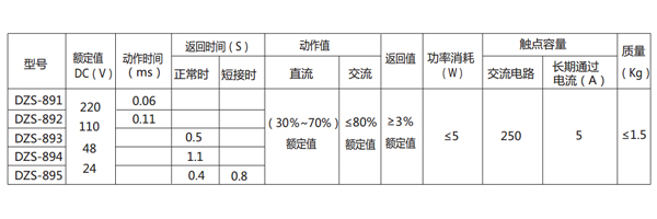 DZS-893/202延時中間繼電器主要技術數據見表