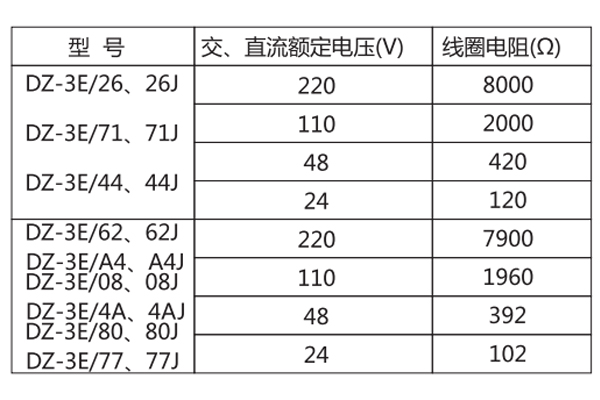 二、DZ-3E/80中間繼電器的技術參數(shù)